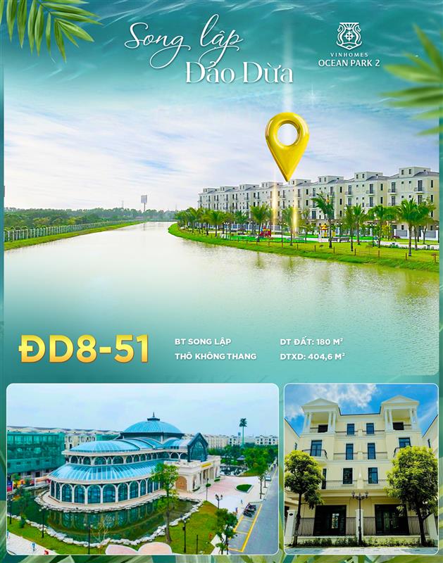 Home Mua Biệt thự Song lập Giá bán căn Biệt thự Song Lập ĐD8-51, Phân khu Đảo Dừa, Vinhomes Ocean Park 2 Giá bán căn Biệt thự Song Lập ĐD8-51, Phân khu Đảo Dừa, Vinhomes Ocean Park 2 Vinhomes Ocean Park 2, Hưng Yên Thông tin chi tiết Đánh giá ID: ĐD8-51 0 (Đang mở bán) Diện tích:180 m2Mặt tiền:9 mĐường rộng:13 mSố tầng:5Hướng nhà: Tây BắcPhân khu: Đảo DừaLoại: Biệt thự Song lậpDự án: Vinhomes Ocean Park 2 Môi trường đường rộng nhìn ra hồ bảo vệ 24/24 yên tĩnh và an toàn có sân chơi gần trường học gần chợ gần sông gần hồ Tiện ích Trường học Bệnh viện Siêu thị Công viên cây xanh Khu nướng BBQ Sân thể thao, hồ bơi Thông tin chi tiết🏠 THÔNG TIN CĂN HỘ 🔹 Mã căn: ĐD8-51 🔹 Giá niêm yết: 🔴 40.23 tỷ 🔹 Diện tích đất: 180 m² 🔹 Diện tích xây dựng: 404.6 m² 🔹 Hướng: TÂY BẮC 🔹 Loại hình: SONG LẬP 🔹 Tiêu chuẩn bàn giao: Thô không thang 💰GIÁ THAM KHẢO THEO HÌNH THỨC THANH TOÁN 🔸 Thanh toán vay: 🔴 38.82 tỷ 🔸 Thanh toán theo tiến độ: 🔴 36.68 tỷ 🔸 Thanh toán sớm: 🔴 34.12 tỷ (Giá bán sẽ cập nhập theo từng chính sách và thời điểm. Cụ thể vui lòng liên hệ Hotline) Đánh giáBạn vui lòng điền thông tin của bạn vào khung dưới đây (5 stars) Xin mời chọn sao đánh giá... Thông tin của bạn đã gửi thành công! Chúng tôi sẽ sớm liên hệ lại bạn. Xin cảm ơn!Thông tin đã được gửi đi. Cám ơn bạn đã quan tâm!Thông tin của bạn đã gửi thành công. Cám ơn bạn đã tương tác! Gửi đi Tweet