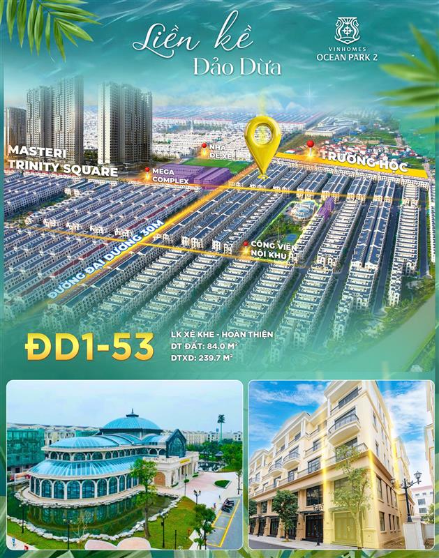 Home Mua Liền kề Giá bán căn Liền kề xẻ khe ĐD1-53, Phân khu Đảo Dừa, Vinhomes Ocean Park 2 Giá bán căn Liền kề xẻ khe ĐD1-53, Phân khu Đảo Dừa, Vinhomes Ocean Park 2 Vinhomes Ocean Park 2, Hưng Yên Thông tin chi tiết Đánh giá ID: ĐD1-53 0 (Đang mở bán) Diện tích:84 m2Mặt tiền:6 mĐường rộng:13 mSố tầng:5Hướng nhà: Tây BắcPhân khu: Đảo DừaLoại: Liền kềDự án: Vinhomes Ocean Park 2 Môi trường đường rộng nhìn ra hồ bảo vệ 24/24 yên tĩnh và an toàn có sân chơi gần trường học gần chợ gần sông gần hồ Tiện ích Trường học Bệnh viện Siêu thị Công viên cây xanh Khu nướng BBQ Sân thể thao, hồ bơi Thông tin chi tiết🏠 THÔNG TIN CĂN HỘ 🔹 Mã căn: ĐD1-53 🔹 Giá niêm yết: 🔴 18.80 tỷ 🔹 Diện tích đất: 84 m² 🔹 Diện tích xây dựng: 239.7 m² 🔹 Hướng: Tây-Bắc 🔹 Loại hình: Liên kế 🔹 Tiêu chuẩn bàn giao: Hoàn thiện 💰GIÁ THAM KHẢO THEO HÌNH THỨC THANH TOÁN 🔸 Thanh toán vay: 🔴 16.59 tỷ 🔸 Thanh toán theo tiến độ: 🔴 15.42 tỷ 🔸 Thanh toán sớm: 🔴 13.96 tỷ (Giá bán sẽ cập nhập theo từng chính sách và thời điểm. Cụ thể vui lòng liên hệ Hotline) Đánh giáBạn vui lòng điền thông tin của bạn vào khung dưới đây (5 stars) Xin mời chọn sao đánh giá... Thông tin của bạn đã gửi thành công! Chúng tôi sẽ sớm liên hệ lại bạn. Xin cảm ơn!Thông tin đã được gửi đi. Cám ơn bạn đã quan tâm!Thông tin của bạn đã gửi thành công. Cám ơn bạn đã tương tác! Gửi đi Tweet